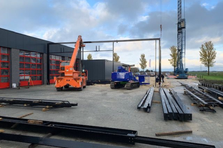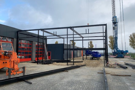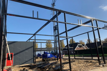 De afgelopen weken is er weer enorm veel werk verzet bij verbouwing van ons pand. Zo staat de complete staalconstructie inmiddels. Alle staaldelen waren exact op maat en paste als een puzzel in elkaar, hierdoor stond de complete constructie binnen slechts enkele dagen op plek.