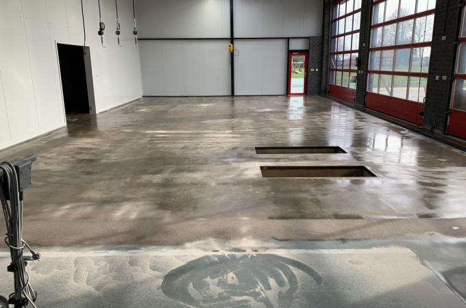 Inmiddels zijn dus de werkplaatsvloer en de showroomvloer geplaatst. Daarnaast hebben we haspels geplaatst in de werkplaats, uit deze haspels komt: